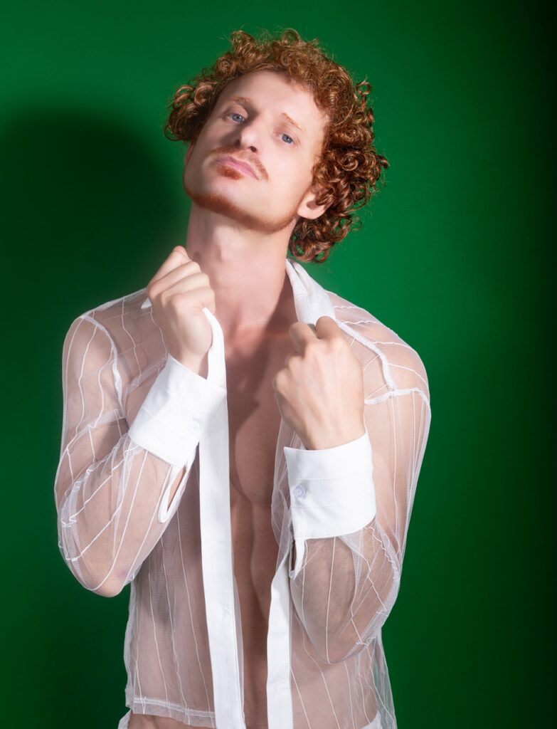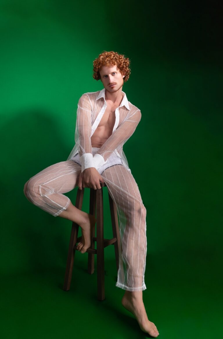 Separamos dois looks para o ensaio interno e um para o externo. Começamos com o interno… não demorou muito para ver que ele manda bem na frente das lentes também. O que talvez tenha chamado mais a nossa atenção, foi o fato de ver como ele deu vida e movimento aos looks através de poses super versáteis, algo por vezes teatral, talvez por influência da carreira de ator, o que para nós foi maravilhoso. E como se não bastasse, ele também usou outros elementos que estavam ao nosso redor no estúdio, como banquetas e caixas de madeira para complementar a composição e impactar ainda mais no resultado das imagens capturadas.
